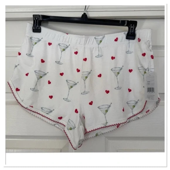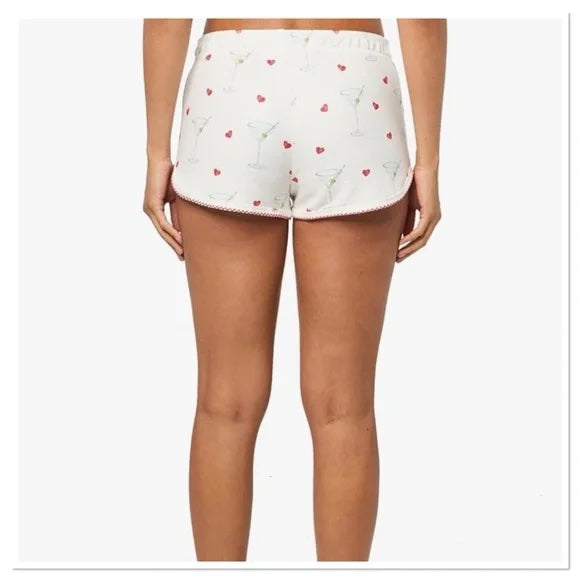 It's all about happy hour! And what could be happier than the comfort of these pajama bottoms by PJ Salvage. This cozy ivory fabric, with drawstring waistband, is adorned with delightful read hearts and martinis! Red piping on the hem adds a touch of charm to your bedtime comfort.