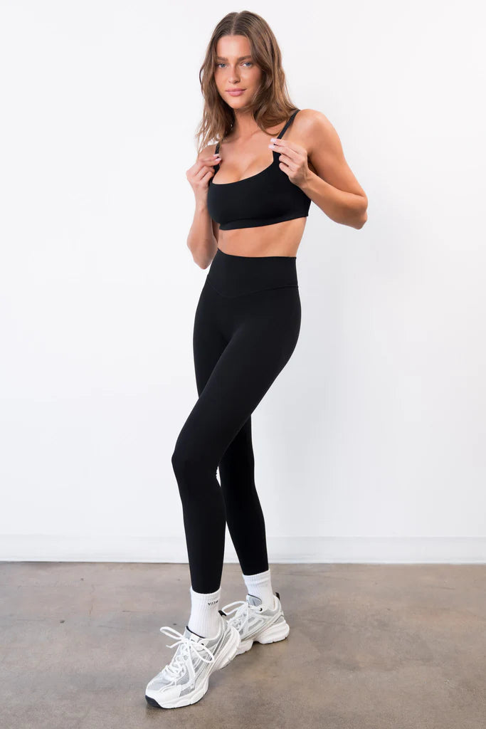 If you’re new to Vitality and unsure where to start, welcome. The Cloud II Pant a mix of the best athletic legging with the best everyday legging, she’s made to do it all. The Cloud II fabric is a blend of majority recycled nylon and spandex, so it’s buttery soft and ultra-stretchy with balanced compression and support, making it perfect for your classic black leggings or go-to yoga pants. It has anti-microbial, sweat-wicking, and fast-drying properties, plus a sneaky bonus superpower: the ability to hold richer, deeper, more vibrant colors and blacker blacks.